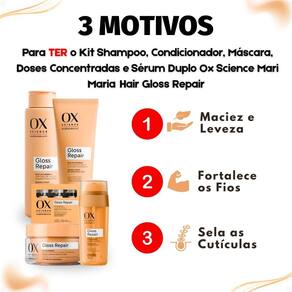 Kit Ox Science Mari Maria Hair Gloss Repair: Shampoo 250ml, Condicionador 200ml, Máscara Capilar 180g, 3 Doses Concentradas e Sérum Capilar 30ml