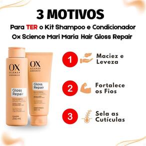 Descubra o poder do Kit Ox Science Mari Maria Hair Gloss Repair, a solução ideal para quem busca revitalizar os cabelos e restaurar o brilho. Este kit exclusivo, desenvolvido pela OX em parceria com a renomada Mari Maria, oferece um tratamento completo para fios danificados e sem vida. Com o Shampoo 250ml e o Condicionador 200ml, seus cabelos receberão o cuidado necessário para um aspecto saudável, luminoso e reparado, transformando a rotina de cuidados capilares em uma experiência de salão.