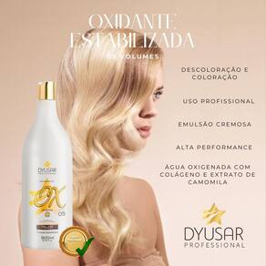 As Oxidantes Estabilizadas ou água oxigenada da DYUSAR Professional possuem fórmula estabilizada, cremosa e perfumada, além de proporcionar uniformidade e brilho. Modo de uso: Misturar a emulsão oxidante com a tintura ou descolorante, conforme as proporções de diluição aconselhadas para cada tipo de produto.