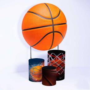 Kit Painel de Festa Redondo de 1,30m e Trio de Cilindros Basquete - Fera Print - Cor: Basquete 2