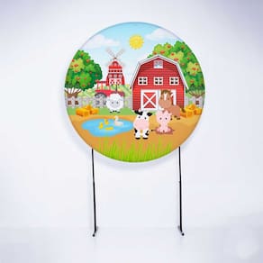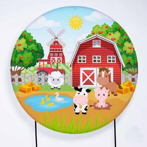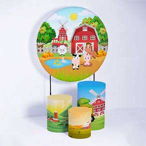 Kit Painel de Festa Redondo de 1,30m e Trio de Cilindros Fazendinha - Fera Print - Cor: Fazendinha 1