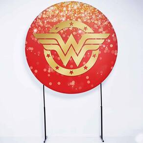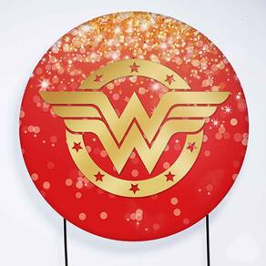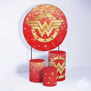 Kit Painel de Festa Redondo de 1,30m e Trio de Cilindros Mulher Maravilha - Fera Print - Cor: Mulher Maravilha 2