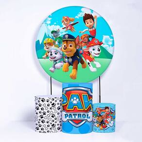 Kit Painel de Festa Redondo de 1,30m e Trio de Cilindros Patrulha Canina - Fera Print - Cor: Patrulha Canina 4