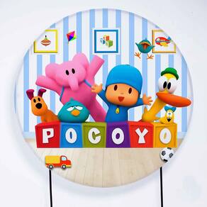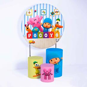 Kit Painel de Festa Redondo de 1,30m e Trio de Cilindros Pocoyo - Fera Print - Cor: Pocoyo 2