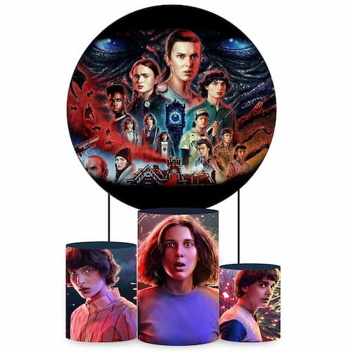 Kit Painel de Festa Redondo de 1,30m e Trio de Cilindros Stranger Things - Fera Print - Cor: Stranger Thinks 1