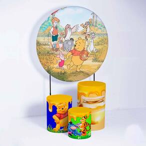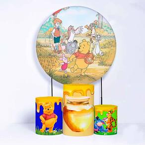 Kit Painel de Festa Redondo de 1,30m e Trio de Cilindros Ursinho Pooh - Fera Print