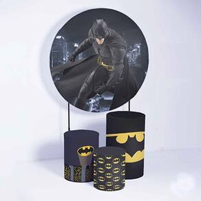 Kit Painel de Festa Redondo de 1,50m e Trio de Cilindros Batman - Fera Print - Cor: Heróis 3