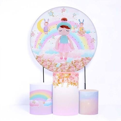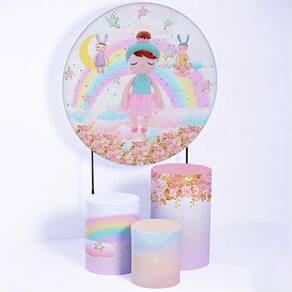 Kit Painel de Festa Redondo de 1,50m e Trio de Cilindros Boneca - Fera Print - Cor: Boneca 2