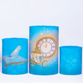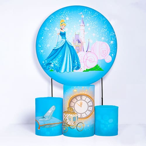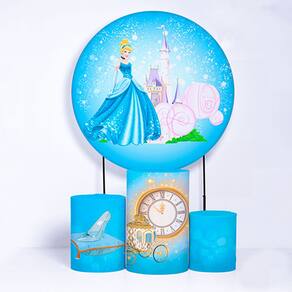 Kit Painel de Festa Redondo de 1,50m e Trio de Cilindros Cinderela - Fera Print - Cor: Kit Cinderela 3