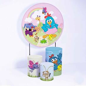 Kit Painel de Festa Redondo de 1,50m e Trio de Cilindros Galinha Pintadinha - Fera Print - Cor: Galinha Pintadinha 10