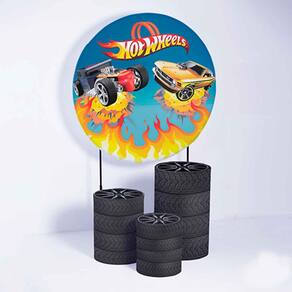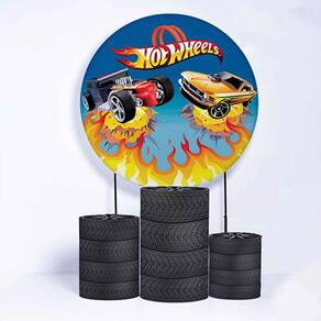 Kit Painel de Festa Redondo de 1,50m e Trio de Cilindros Hot Wheels - Fera Print - Cor: HotWheels 4