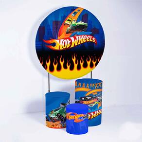 Kit Painel de Festa Redondo de 1,50m e Trio de Cilindros Hot Wheels - Fera Print - Cor: HotWheels 3