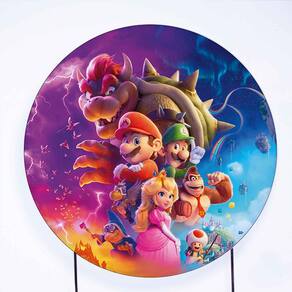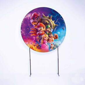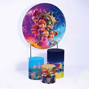 Kit Painel de Festa Redondo de 1,50m e Trio de Cilindros Mario Bros - Fera Print - Cor: Mario 7