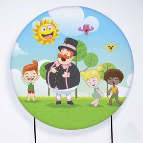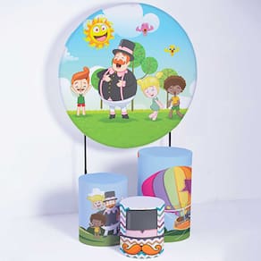 Kit Painel de Festa Redondo de 1,50m e Trio de Cilindros Mundo Bita - Fera Print - Cor: Mundo Bita 1