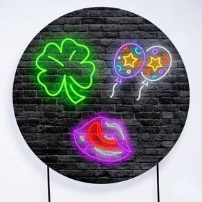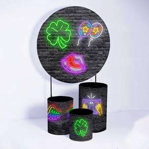 Kit Painel de Festa Redondo de 1,50m e Trio de Cilindros Neon - Fera Print - Cor: Neon 4