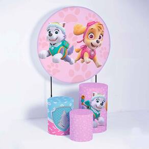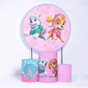 Kit Painel de Festa Redondo de 1,50m e Trio de Cilindros Skye - Fera Print - Cor: Skye 2