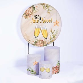Kit Painel de Festa Redondo de 1,80m e Trio de Cilindros Ano Novo- Fera Print - Cor: Ano Novo 4