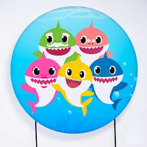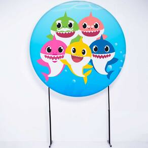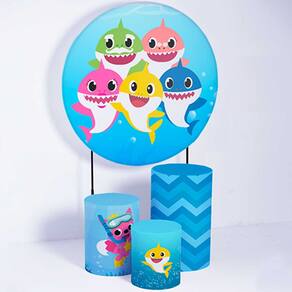 Kit Painel de Festa Redondo de 1,80m e Trio de Cilindros Baby Shark - Fera Print - Cor: Baby Shark 2