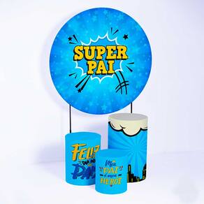 Kit Painel de Festa Redondo de 1,80m e Trio de Cilindros Dia dos Pais - Fera Print - Cor: Dia dos Pais 3