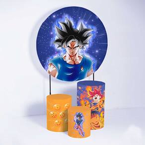 Kit Painel de Festa Redondo de 1,80m e Trio de Cilindros Dragon Ball - Fera Print - Cor: Kit Dragon Ball 1
