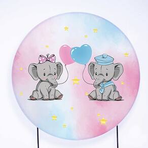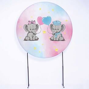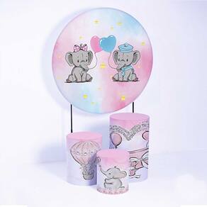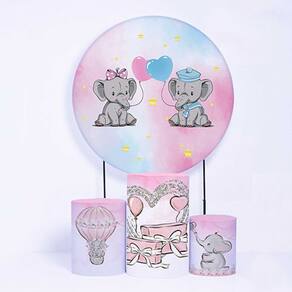 Kit Painel de Festa Redondo de 1,80m e Trio de Cilindros Elefantes - Fera Print - Cor: Elefante 7