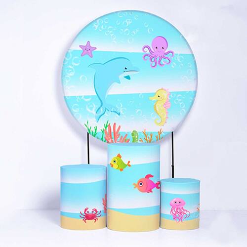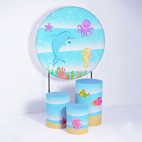 Kit Painel de Festa Redondo de 1,80m e Trio de Cilindros Fundo do Mar - Fera Print - Cor: Fundo do Mar 7