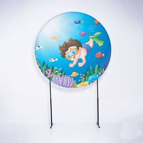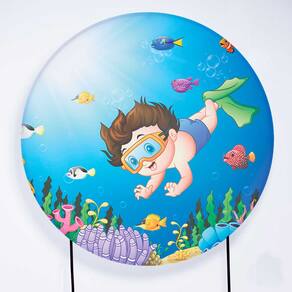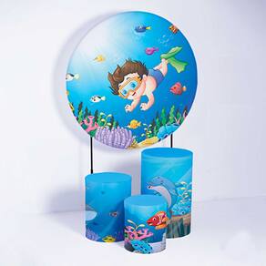 Kit Painel de Festa Redondo de 1,80m e Trio de Cilindros Fundo do Mar - Fera Print - Cor: Fundo do Mar 3