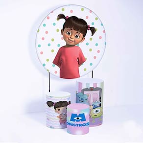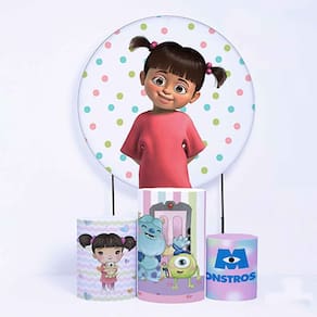 Kit Painel de Festa Redondo de 1,80m e Trio de Cilindros Monstros S.A - Fera Print - Cor: Monstros SA 1