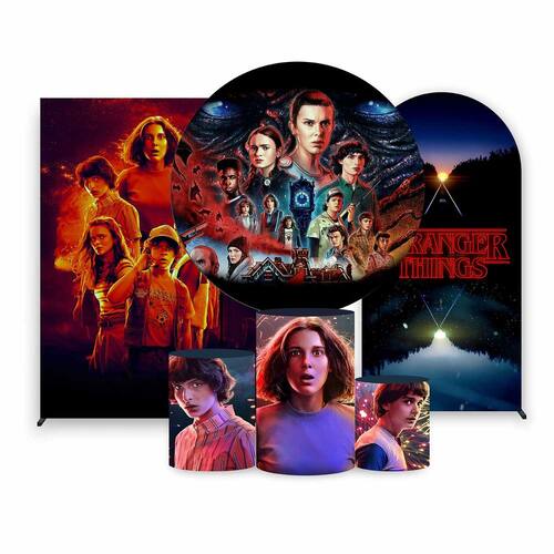 Kit Painel de Festa Redondo de 1,80m, Trio de Cilindros, Painel Lateral e Romano Stranger Things - Fera Print - Cor: Stranger Thinks 1