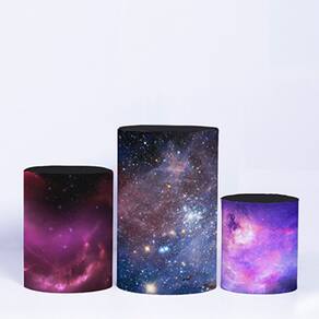 Kit Painel de Festa Redondo e Trio de Cilindros Astronauta - Fera Print - Cor: Kit Astronauta 1 | Medidas do Painel: Painel Redondo 1,80 metros