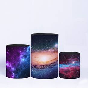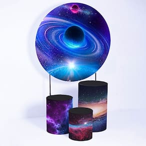 Kit Painel de Festa Redondo e Trio de Cilindros Astronauta - Fera Print - Cor: Kit Astronauta 2 | Medidas do Painel: Painel Redondo 1,30 metros