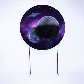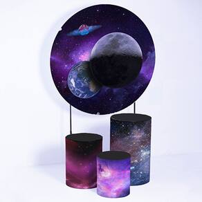 Kit Painel de Festa Redondo e Trio de Cilindros Astronauta - Fera Print - Cor: Kit Astronauta 1 | Medidas do Painel: Painel Redondo 1,30 metros