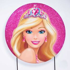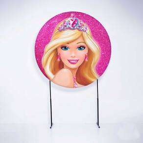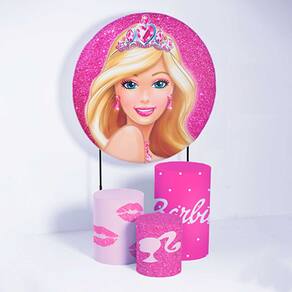 Kit Painel de Festa Redondo e Trio de Cilindros Barbie - Fera Print - Medidas do Painel: Painel Redondo 1,80 metros