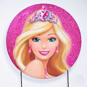 Kit Painel de Festa Redondo e Trio de Cilindros Barbie - Fera Print - Medidas do Painel: Painel Redondo 1,30 metros