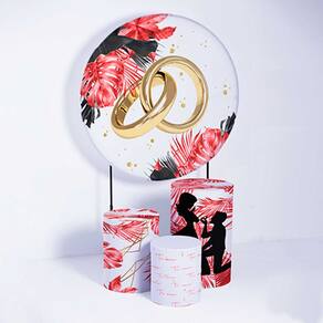 Kit Painel de Festa Redondo e Trio de Cilindros Casamento - Fera Print - Medidas do Painel: Painel Redondo 1,80 metros