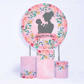 Kit Painel de Festa Redondo e Trio de Cilindros Dia das Mães - Fera Print - Cor: Kit Dia das Mães 3 | Medidas do Painel: Painel Redondo 1,80 metros