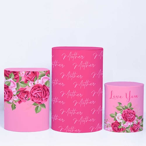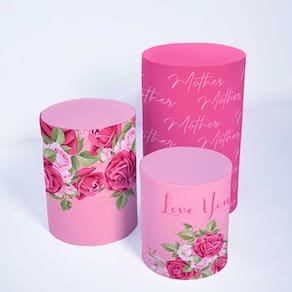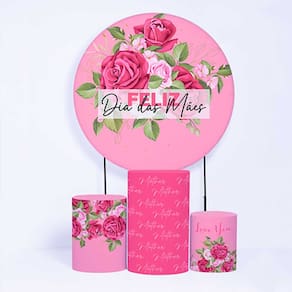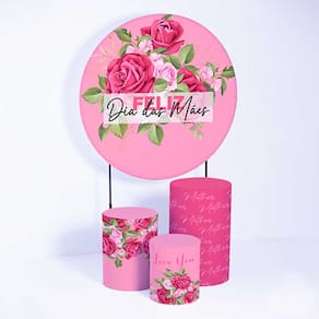 Kit Painel de Festa Redondo e Trio de Cilindros Dia das Mães - Fera Print - Cor: Kit Dia das Mães 1 | Medidas do Painel: Painel Redondo 1,30 metros