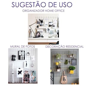 Decoração criativa e funcional! A tela aramada de metal está em alta na decoração dos cantos mais descolados. a peça parece ter se tornado um item indispensável na organização vertical de salas e home offices, com facil instalação e otimização de espaço pode ser utilizado de diversas formas, como por exemplo: