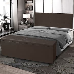 Kit Painel e Calçadeira Baú Casal 1,40m Berlim Corano - Pallazio - Marrom