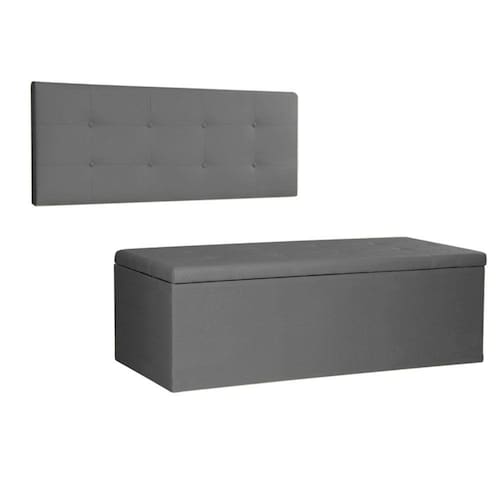 Kit Painel e Calçadeira Baú Casal 1,40m Berlim Suede Cinza - Pallazio