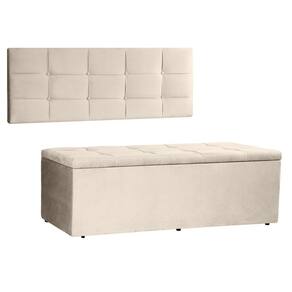 Confeccionados com material de alta qualidade, ambos os itens do kit apresentam acabamento em suede, proporcionando um toque suave e agradável ao toque, além de serem resistentes e duráveis. A cabeceira painel serve como um elemento decorativo central, enquanto a calçadeira baú oferece uma solução prática para organizar roupas de cama, travesseiros e outros itens.