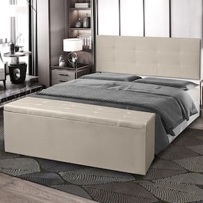 Confeccionados com material de alta qualidade, ambos os itens do kit apresentam acabamento em Corano, proporcionando um toque suave e agradável ao toque, além de serem resistentes e duráveis. A cabeceira painel serve como um elemento decorativo central, enquanto a calçadeira baú oferece uma solução prática para organizar roupas de cama, travesseiros e outros itens.