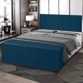 Kit Painel e Calçadeira Baú Queen 1,60m Berlim Suede - Pallazio - Azul Marinho