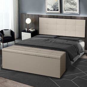 Kit Painel e Calçadeira Baú Solteiro 0,90m Roma Corano Bege - Pallazio