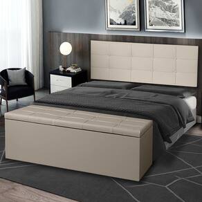 Confeccionados com material de alta qualidade, ambos os itens do kit apresentam acabamento em Corano, proporcionando um toque suave e agradável ao toque, além de serem resistentes e duráveis. A cabeceira painel serve como um elemento decorativo central, enquanto a calçadeira baú oferece uma solução prática para organizar roupas de cama, travesseiros e outros itens.