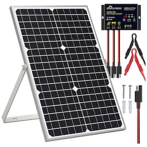 O que você obtém 1 painel solar 1 controlador regulador do carregador solar 2 garras jacaré 1 cabo de extensão SAE 1 conjunto de peças de montagem