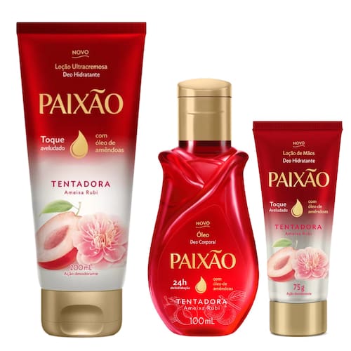 Loção Hidratante Paixão Ultracremosa Tentadora Ameixa Rubi contém em sua fórmula o Óleo de Amêndoas, proporciona toque aveludado, perfumação prolongada, 48h de hidratação, rápida absorção.