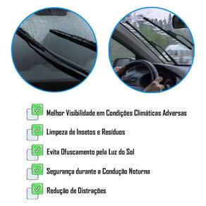 Outro benefício importante é que essas palhetas evitam o ofuscamento pela luz do sol, mantendo o para-brisa livre de manchas e reflexos que podem atrapalhar a sua visão. Além disso, elas garantem a segurança durante a condução noturna em chuvas, mantendo o para-brisa limpo e claro.