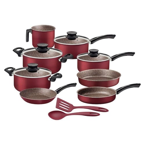 Sabe aquele item essencial para uma cozinha funcional e cheia de estilo? Com certeza, é o jogo de panelas Tramontina Paris em alumínio com revestimento interno e externo em antiaderente Starflon Max vermelho 10 peças. Adequado para uso diário, ele tem peças desenvolvidas em alumínio com revestimento em Starflon Max, características que juntas, cozinham os alimentos de maneira rápida e uniforme, sem grudar na superfície. Suas panelas e caçarolas vem com tampas de vidro temperado, com saída de vapor e bordas de aço inox e todas as peças de fogão tem cabos, alças ou pegadores em materiais antitérmicos, que não aquecem e oferecem maior segurança durante o manuseio. Além de todos esses atributos, o jogo pode ser levado à máquina de lavar louças e acompanha dois utensílios de nylon que suportam temperaturas até 180 C e são ideais para utilização em superfícies antiaderentes!