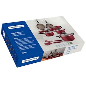 Jogo de Panelas Paris 10 Peças em Alumínio com Revestimento Interno e Externo Antiaderente Vermelho Tramontina - Na sua casa